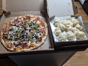 Our Pizza Dough Rolled and Stuffed with Ham, Sausage, Pepperoni, Mushrooms, Green Peppers, Provolone and Mozzarella Cheeses. Served with Our Marinara Sauce on the Side.
