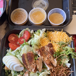 We offer: Ranch, 1000 Island, Honey Mustard, Italian, Balsamic Vinaigrette, Bleu Cheese, French, and Raspberry Vinaigrette