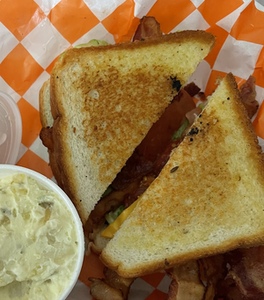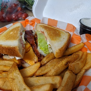 Served with your choice of one side item. Make any sandwich into a wrap for no extra charge! Melts on Texas Toast add $1.00. Add Onion Tangles, Fried egg, fried green tomato, bacon or make it a Quesadilla for $1.00 each. Add Cheese for $0.60 (Choice of American, Smoked Cheddar, Swiss, Monterrey Jack or Pepper Jack). Pick your bread (Sesame Seed Bun, Gourmet Bun, Hoagie Roll, Texas Toast, Wheat or Rye Bread)