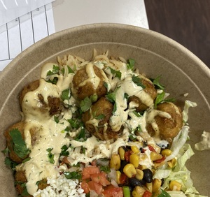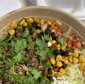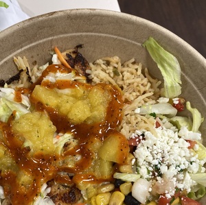 All bowls served over corn bean salsa, rice, lettuce, pico de gallo and queso fresco. Add queso, bacon or guacamole for additional charge