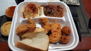 Served with any combination of Baked Beans & Slaw. Substitute any side for $0.65 extra. Substitute Chicken Tenders at no extra charge.