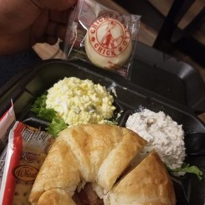 Served on your choice of flaky croissant (flaky croissant cannot be toasted), traditional white or wheatberry bread. Includes your choice of any side, cup of soup or scoop. Add another for only $2.50 more.