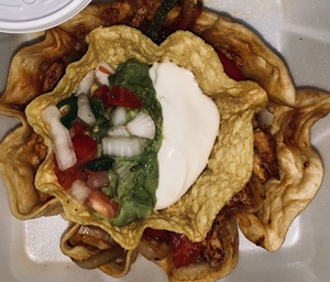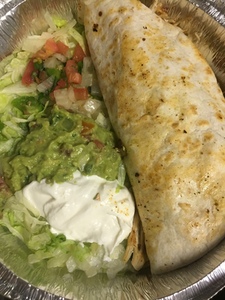 A flour tortilla filled with your favorites, melted cheese, grilled to perfection and served with lettuce, guacamole, sour cream and pico de gallo