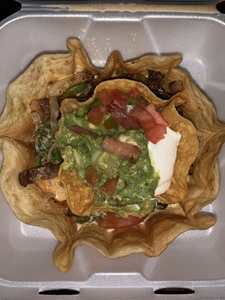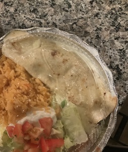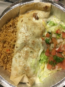 Over-stuffed flour tortilla with choice of meats, deep-fried to a golden brown and topped with cheese. Served with lettuce, sour cream, pico de gallo, and guacamole, rice and refried beans