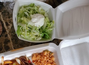 Mexican style Kebabs prepared with Skewered Onions, Lime, Tomatoes, Peppers, and Your Choice of Meat. Served on top of a bed of Rice and Cooked Vegetables (Zucchini, Yellow Squash, Carrots, and Mushrooms). Served with Beans, Lettuce, and Sour Cream