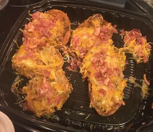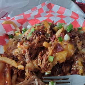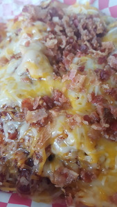 Slow smoked hand pulled bbq pork or chicken, butter, shredded cheese, bacon crumbles, chives!