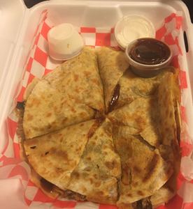 Made with two 10" tortillas. All Quesadillas are made with Shredded Cheese and your choice of meat.