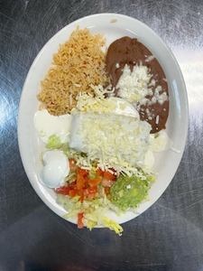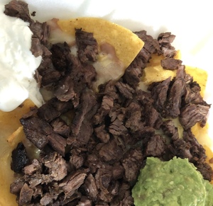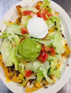 Choices: Queso dip, sour cream, or chili con carne