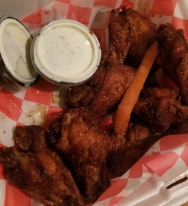 Served with celery and carrots. Mix and match up to 2 of our rubs and sauces. One dressing per 10 wings. Extra dressings for $0.32
