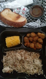 Pulled Pork, Beef or Chicken Sandwiches served with your choice of cole slaw or hot slaw, chips & pickle. Substitute in any side item for $1.89 extra