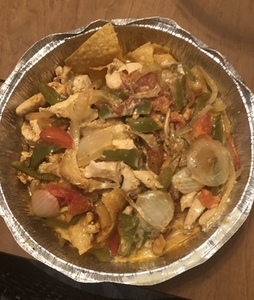 All served on a bed of tortilla chips with white melted Land O'Lakes cheese