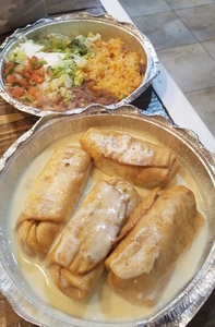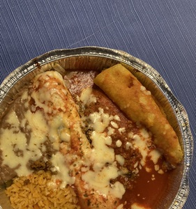 All combos served with Mexican rice, beans and red sauce. Cheese sauce only $1.25 more.