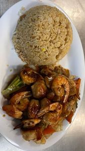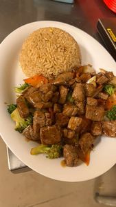 Your choice of fried or steamed rice. Served with carrots, broccoli, onion and cabbage. Yum-Yum sauce on the side