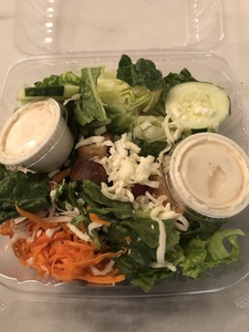 Dressings: Vinaigrette, Sundried Honey French, Creamy Italian, Ranch, Honey Mustard, Bleu Cheese Crumbles, and 1000 Island