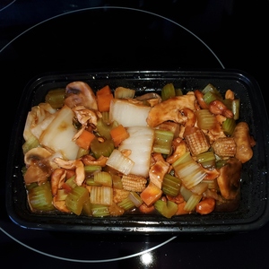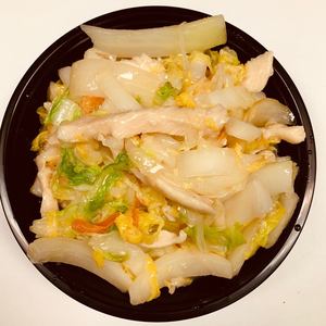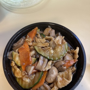 Fresh Bok Choy, Carrot, Celery, Onions Seasoning in Tasty Sauce. Served with White Rice and Crispy Noodle