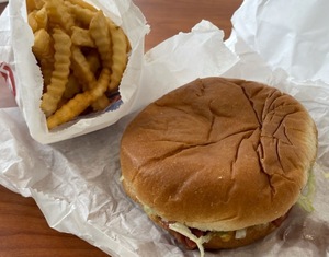 8oz. Meat, Fries, Slaw, Tomato, Pickle and Rolls.