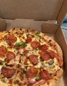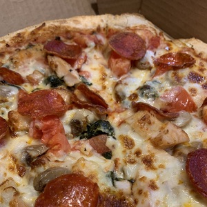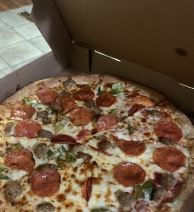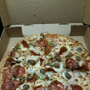 Cheese, Beef, Sausage, Pepperoni, Canadian Bacon, Mushrooms, Green Peppers, and Onions