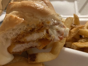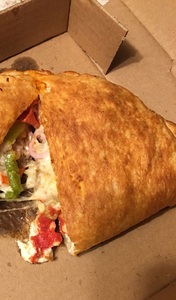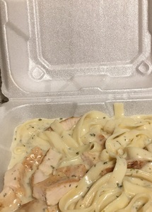 Chicken, Alfredo Sauce, Green Peppers, Onions, and Tomatoes