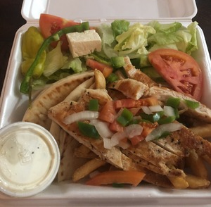 Feta Cheese, Black Olives, Tomatoes, Spinach, and Gyro Meat