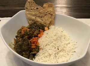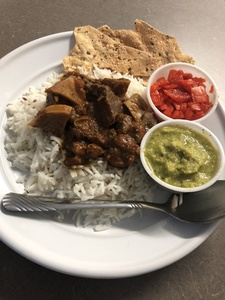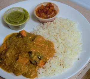 All entrees are served with rice, mint and onion chutneys