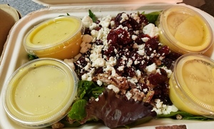 Made from scratch with fresh Romaine or Filed Greens every day! All Half, Whole & Entree salads come with a side of Italian flat bread (or gluten-free bread for $1.25). Add grilled or fried chicken to any salad for an extra charge. Extra dressings for $0.75 each