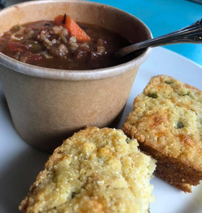 soup/Mini sandwich (Bacon, Ham, Turkey, or veggie)/mini rainbow salad /veggie or meat pie / slice of quiche / pasta salad /quinoa salad /Slaw