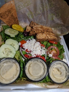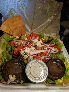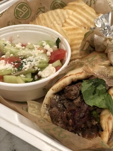 Served with Greek Salad, Baked or Soft Pita Chips & Your Choice of Roasted New Potatoes or Basmati Rice. Served with one piece of pita.
