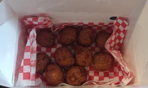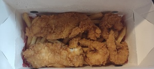 Basket comes with Cajun fries or regular fries, substitute onion rings or sweet potato fries for $1.50 more. Choice of sauce: Tartar, Ranch, Blue Cheese, Honey Mustard, Cocktail or Marinara