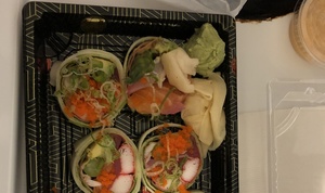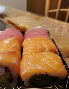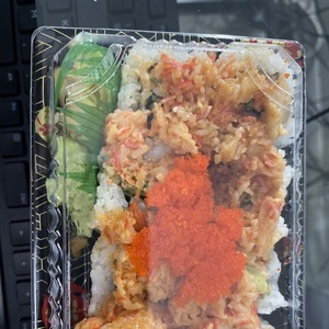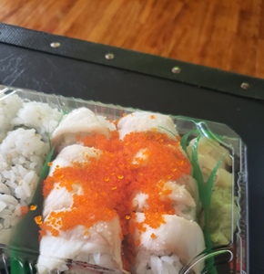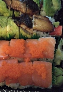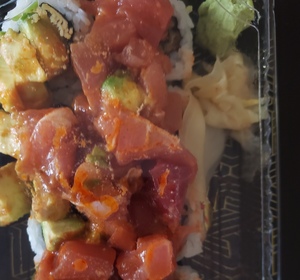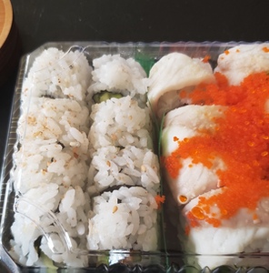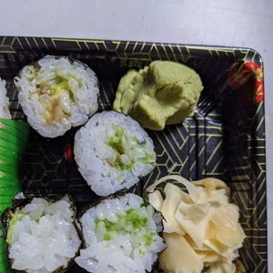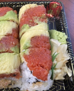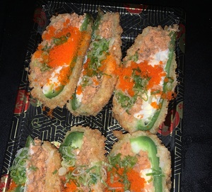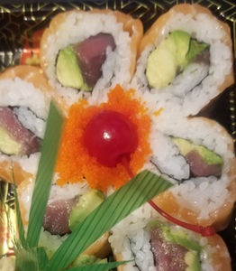 All Rolls are served in 6-8 Pieces. Goma Sauce: Sesame seed powder, Chili oil, Ponzu mix, etc..; Green Sauce: Avocado, Wasabi, Mayonnaise, Sweetener, etc..