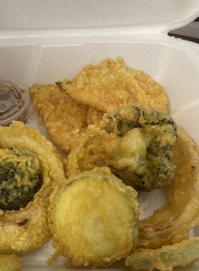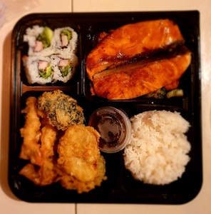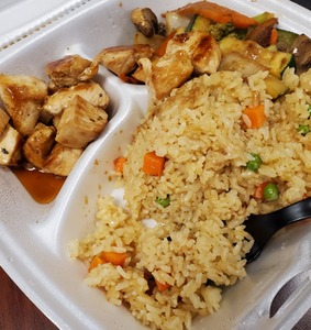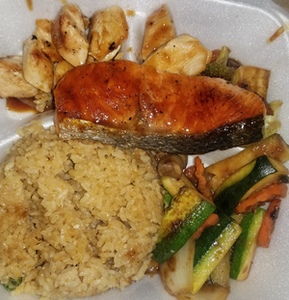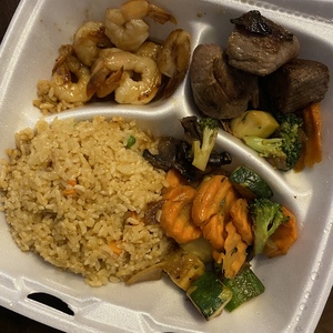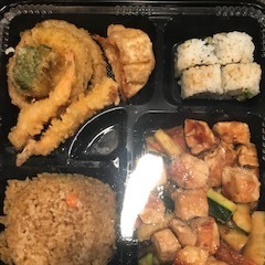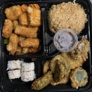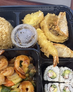 Served with House Salad & Soup (Miso or Chicken Broth), Vegetables & Steamed Rice (Fried Rice for $1.50 extra), California Roll (4 pieces - No Substitutions), Fried Beef Dumplings (2 pieces), and Tempura (4 pieces vegetable tempura & 2 pieces shrimp tempura)