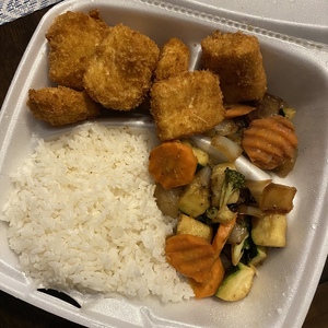 Japanese breaded & deep fried Cutlet with Katsu Sauce, served with House Salad & Soup (Miso or Chicken Broth), and Steamed Rice (or Fried Rice for $1.50 extra). Not served with vegetables
