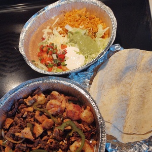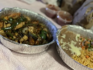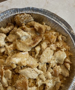 All shredded chicken is sauteed with tomato, onion and bell peppers